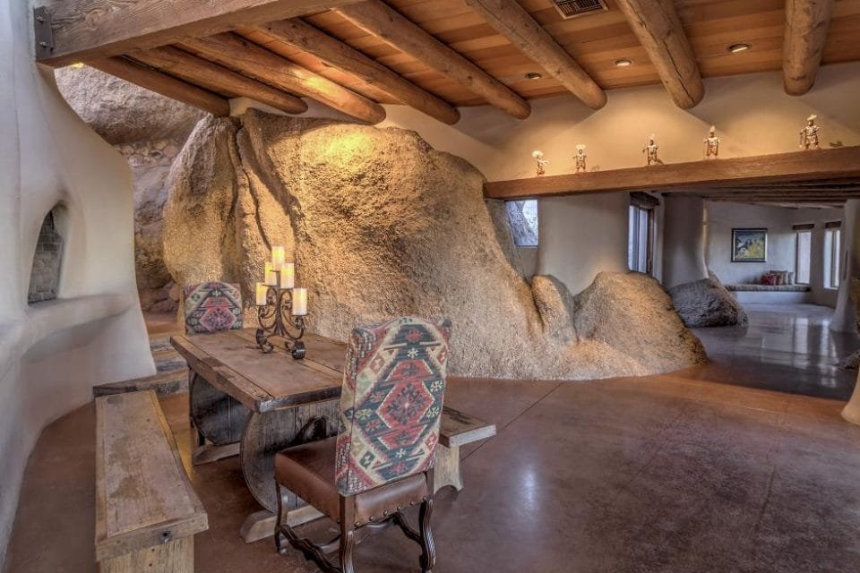 A dream home for archaeologists, historians, artists or mystery lovers, the Boulder House on nine acres with 4,380 square feet, three bedrooms, two baths and a great room with a massive fireplace was recently for sale at $4.2 million.  It was reportedly sold, not long after the listing, for almost $5 million.